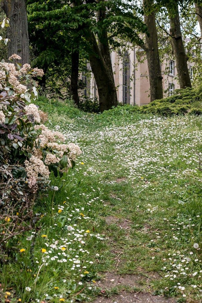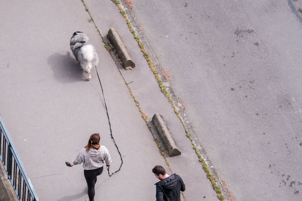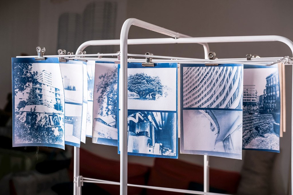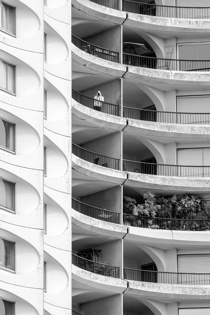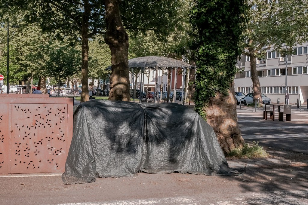 A valeur focale respectant les distances de sécurité sanitaire, toujours. Regarder la lumière, prendre le temps de décomposer une éclaircie. Rendez-vous au Belvédère, shooter la voisine du dernier étage, puis marcher dans les méandres du grand séminaire, découvrir son sous-bois. Repenser à Palerme, un an après, l’arbre a grandi dans le jardin au plus proche de la maison. Observer sous différents angles le quartier, le Penthièvre, encore, Les Horizons, encore, Aller chercher des plantes à infuser chez un voisin, y trouver plus tard un escargot, entre temps rejoindre le rendez-vous photographique avec un voisin pour un deuxième mardi, 16h. Se souvenir de Catane où la banque de Sicile chevauche les ruines antiques. Promener le chien par procuration, rappel d’un propos radiophonique récent, la brigade cynophile pourrait bien être missionnée pour détecter les malades. Réunir deux axes photographiques d’un trentième étage et les tirer ensemble. Croiser un voisin, parler des changements potentiels, croiser des voisines, vider les verres. « Les gens fument, ils achètent un peu de presse mais les gens n’ont plus envie de jouer » dit le buraliste. Croiser des voisins, acheter du pain, croiser une voisine, attendre les légumes. Faire réunion dans la pelouse privée, photographier une voisine et un chat de passage. Faire cyanotype. Faire film avec une collection de coquillages. Les terrasses sont cachées sous bâches, un humain sur pelouse regardant le lointain, un humain sous tente sans doute, les canards incarnant soudain la liberté d’aller et flotter.