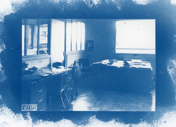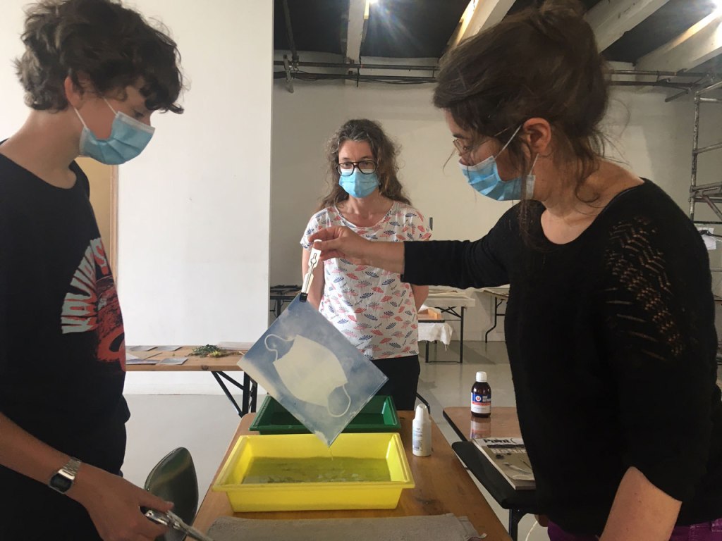 Ateliers de pratique photographie et développement cyanotype, les 20 juin et 25 juillet 2020 aux Ateliers du Vent, pour voyager dans le temps avec les photos d’archives de l’usine des ADV, photographier de « nouvelles archives », réaliser des tirages cyanotypes , expérimenter l’insolation de papier photosensibles et les virages du bleu au noir.