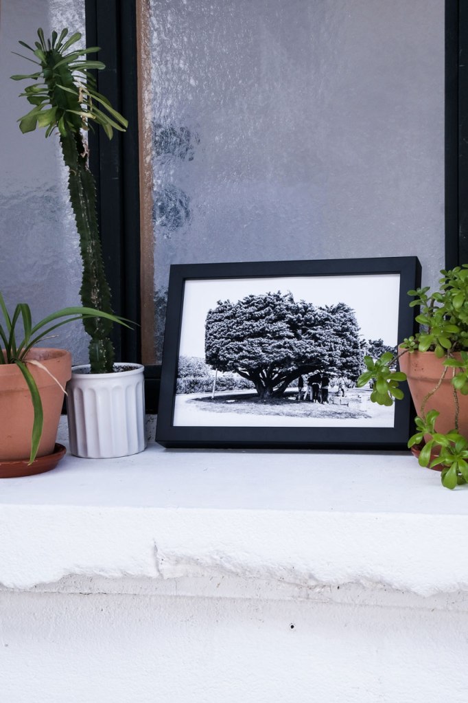 Le pan de mur est noirci de feuillages qui s’allongent et s’étirent en une coulée grise. Les