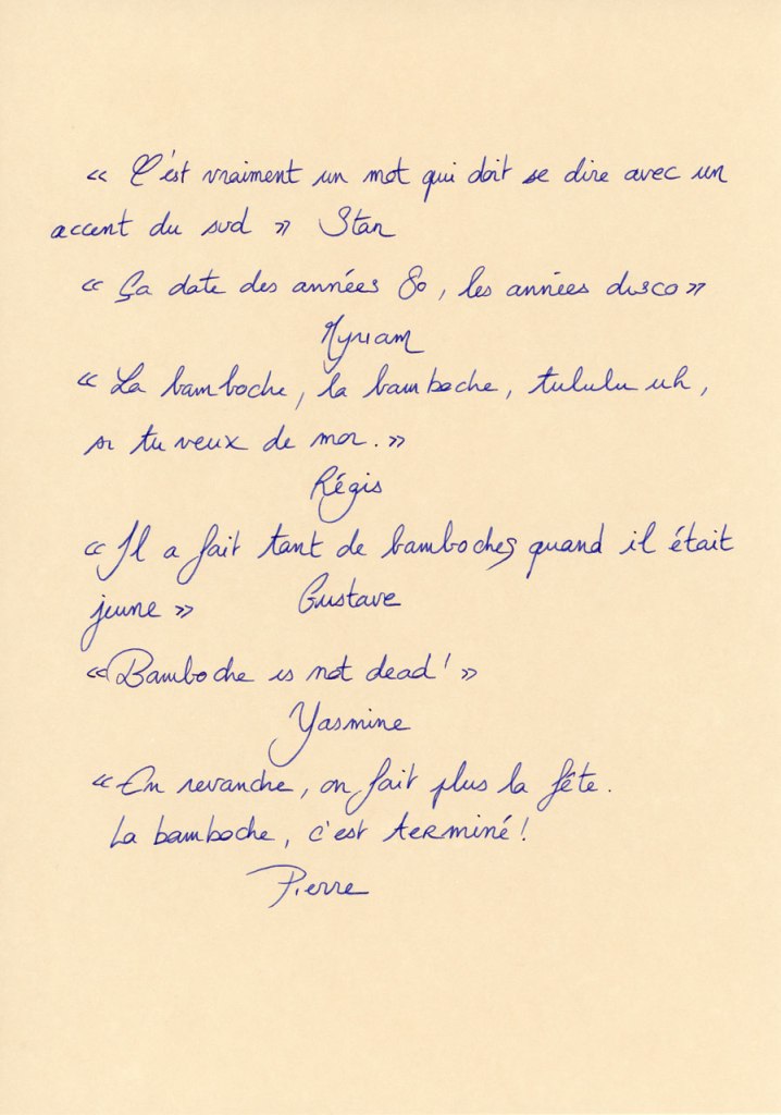 dans l’ordre d’apparition : Candice Hazouard, Régis Guigand, Maud Jegard, Peggy Dalibert, Agathe Mercat, Matthieu Blin, Catherine Duverger, Mitch Fournial, Estelle Chaigne, Myriam Ingrao