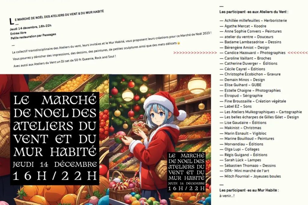 au MARCHÉ DE NOËL DES ATELIERS DU VENT & DU MUR HABITÉ.