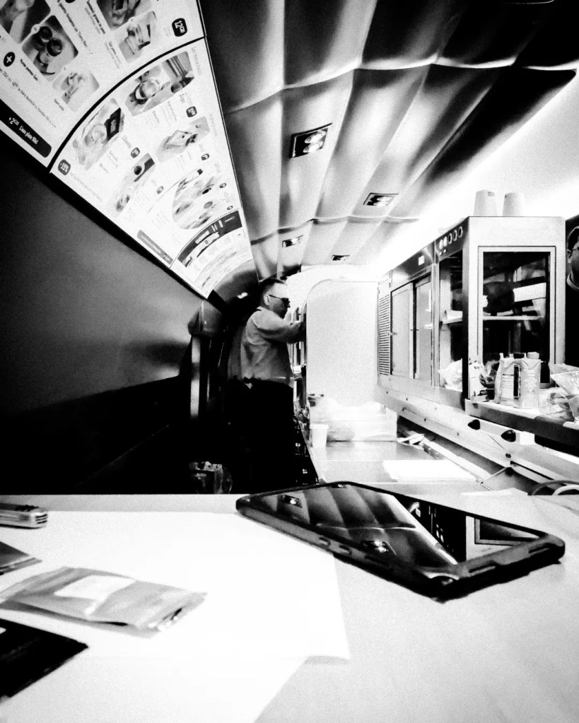 Voila une série de photographies en Noir & Blanc de grand qualité . La première qui est en avant avec ce flou volontaire me fait songer au film « taxi driver » lorsque Travis Bickle joué par Robert De Niro est dans la cafétéria avec ses collègues et qu’il prend une aspirine après son café …