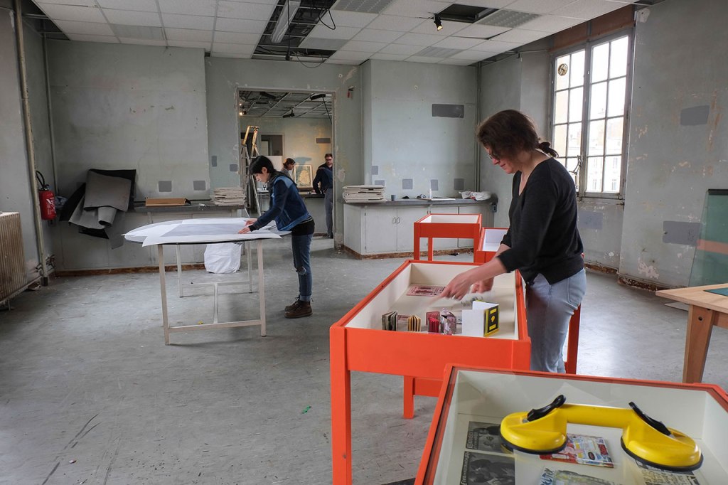 Spéléographies s’installe à l’Hôtel Pasteur, jetez un œil ci-dessus au montage des expositions de Julie Doucet et de Pascal Leyder. Dès demain de 14h à 19h jusqu’au 18 juin, les expositions seront ouvertes, et seront vernies le mardi 31 mai à 18h30.