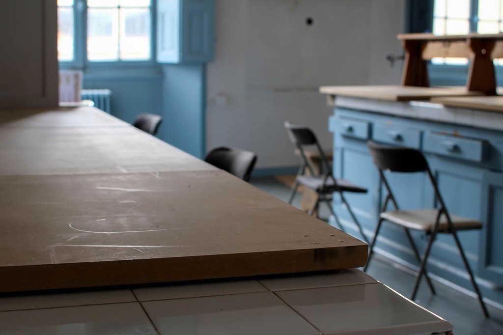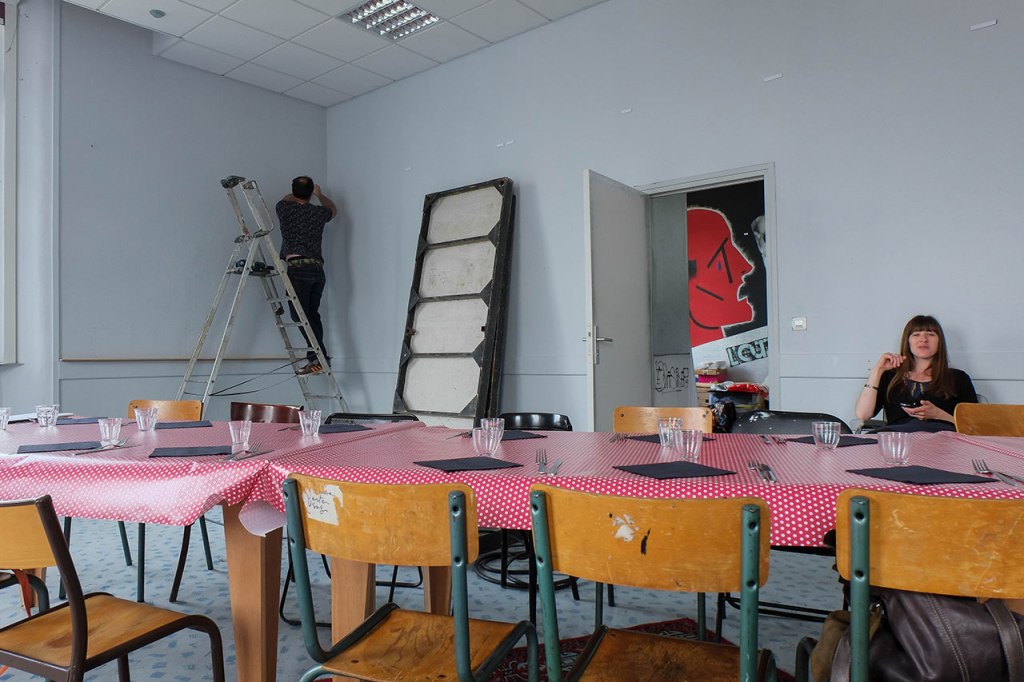 Ci-dessous, le futur labo où les artistes laborantins viendront travailler ensemble du 30 mai au 5 juin. Pour qu’ils soient heureux de créer, ils vivront cachés dans ces pièces, et sortiront le soir dans l’Hôtel Pasteur à partir de 18h30 vous proposer des « rencontres apéritives » et des « propositions protéiformes » du 1er au 4 juin.