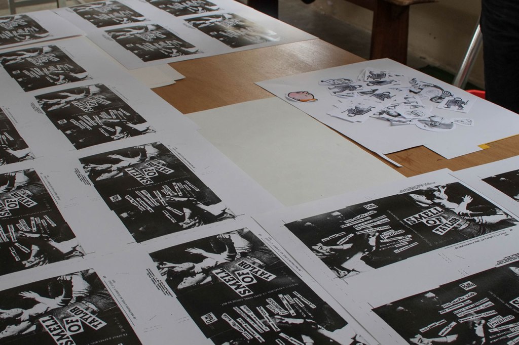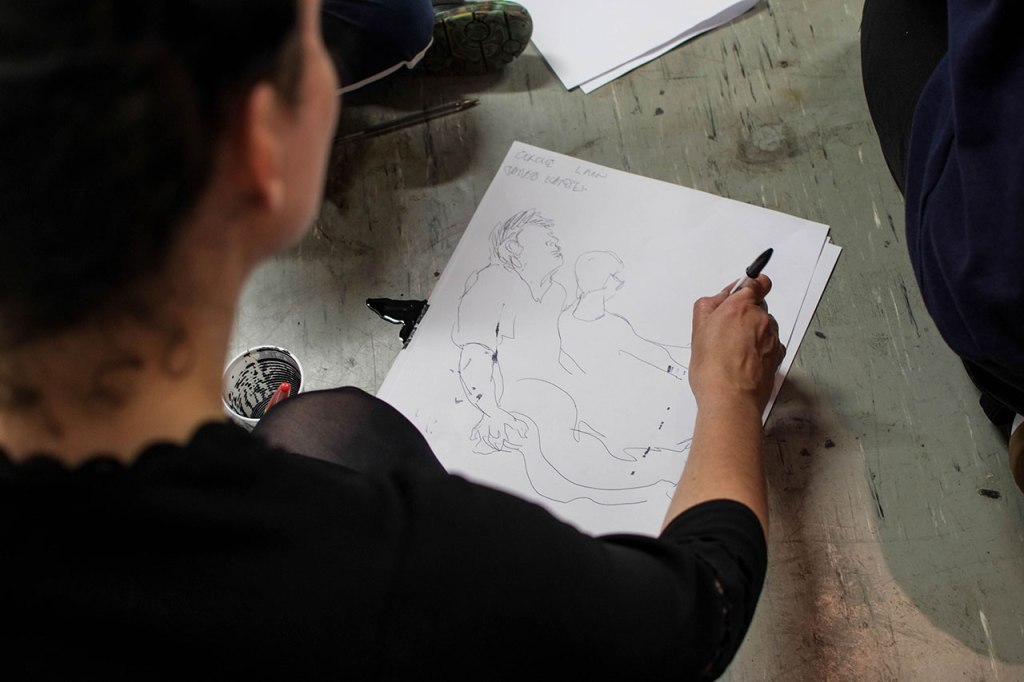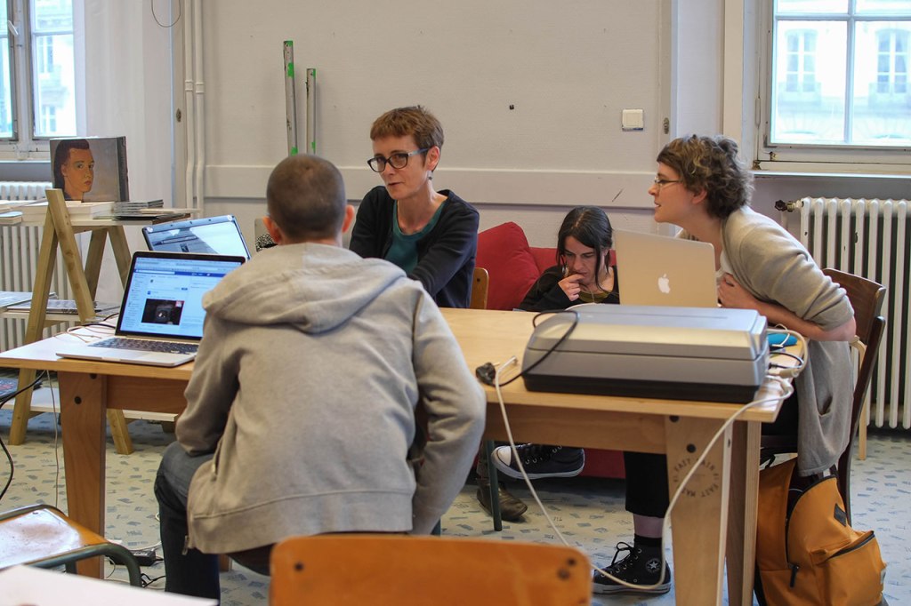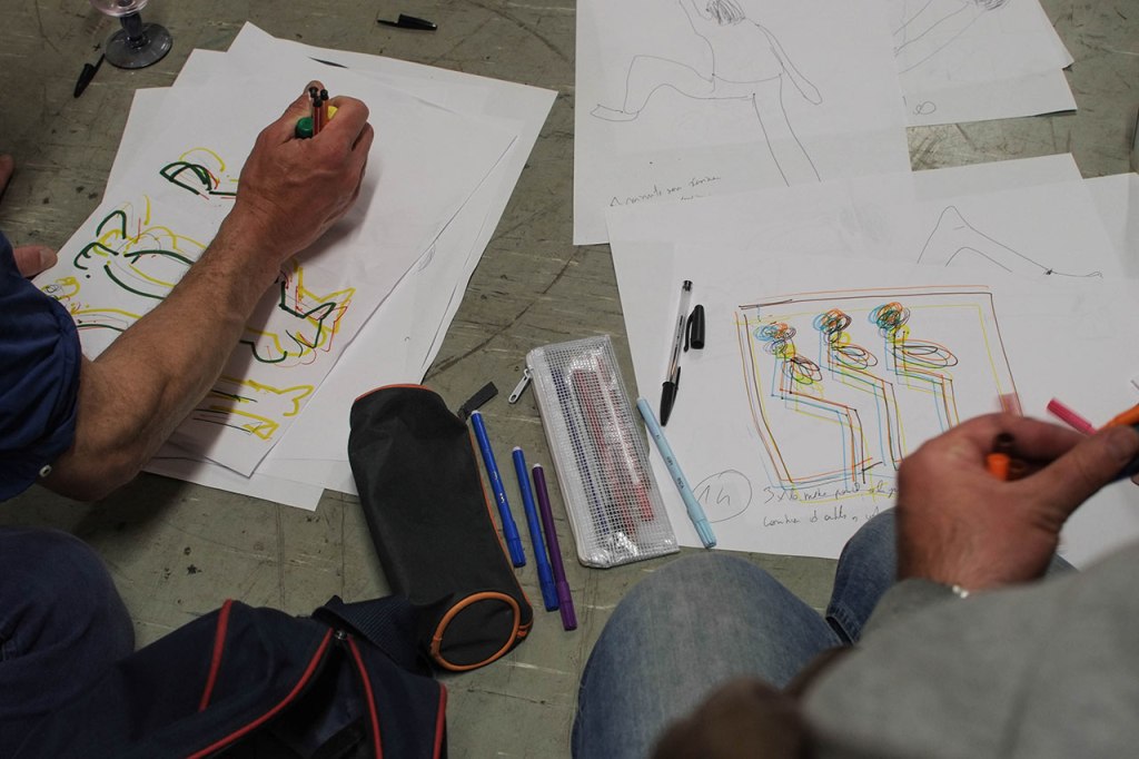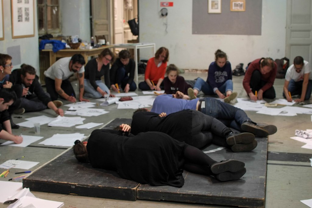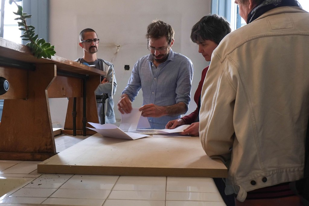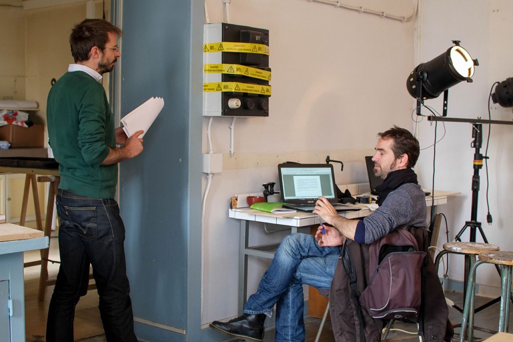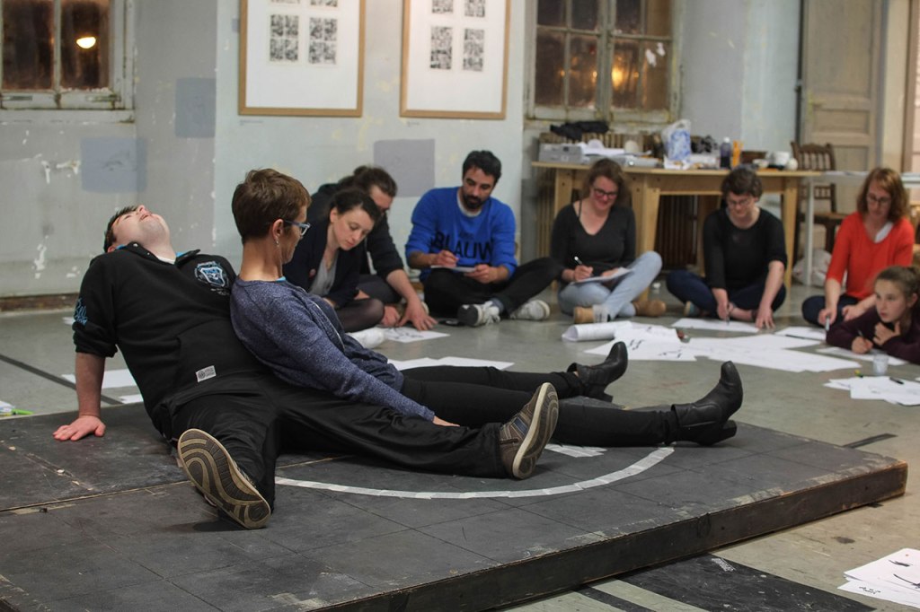 Les laborantins se placent dans le labo, à l’écoute de Mathilde et June de Chifoumi qui leur proposent des exercices pour se mettre en mains, et entrer en contact. Sébastien Lumineau, chargé de mise en page, montre le gabarit de travail. En fin d’après midi, les premiers territoires se dessinent.