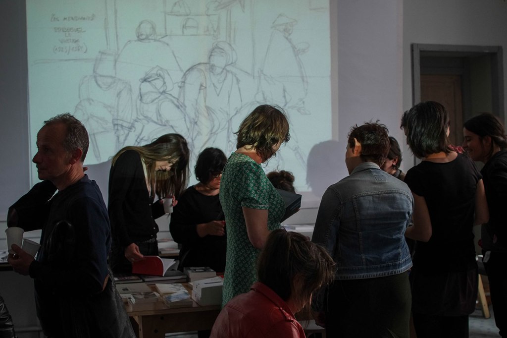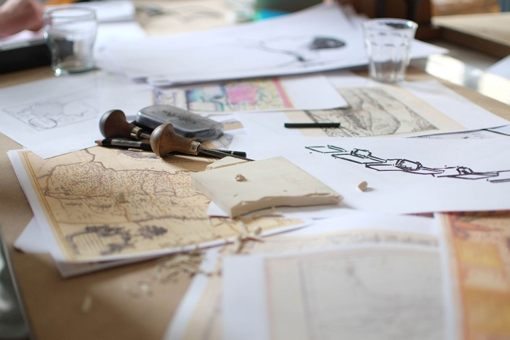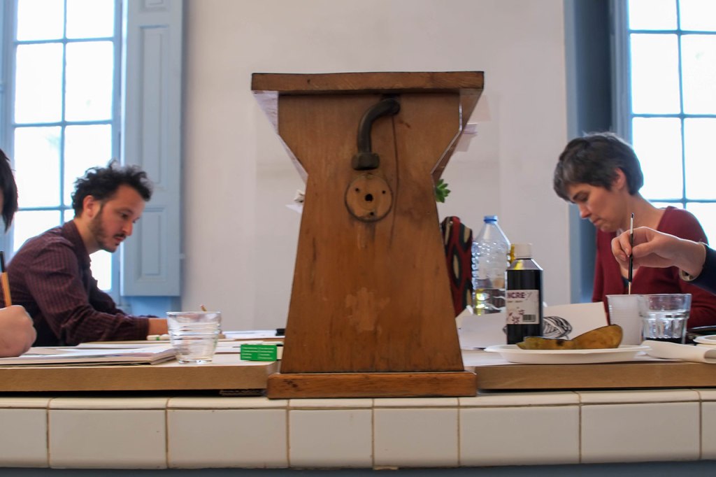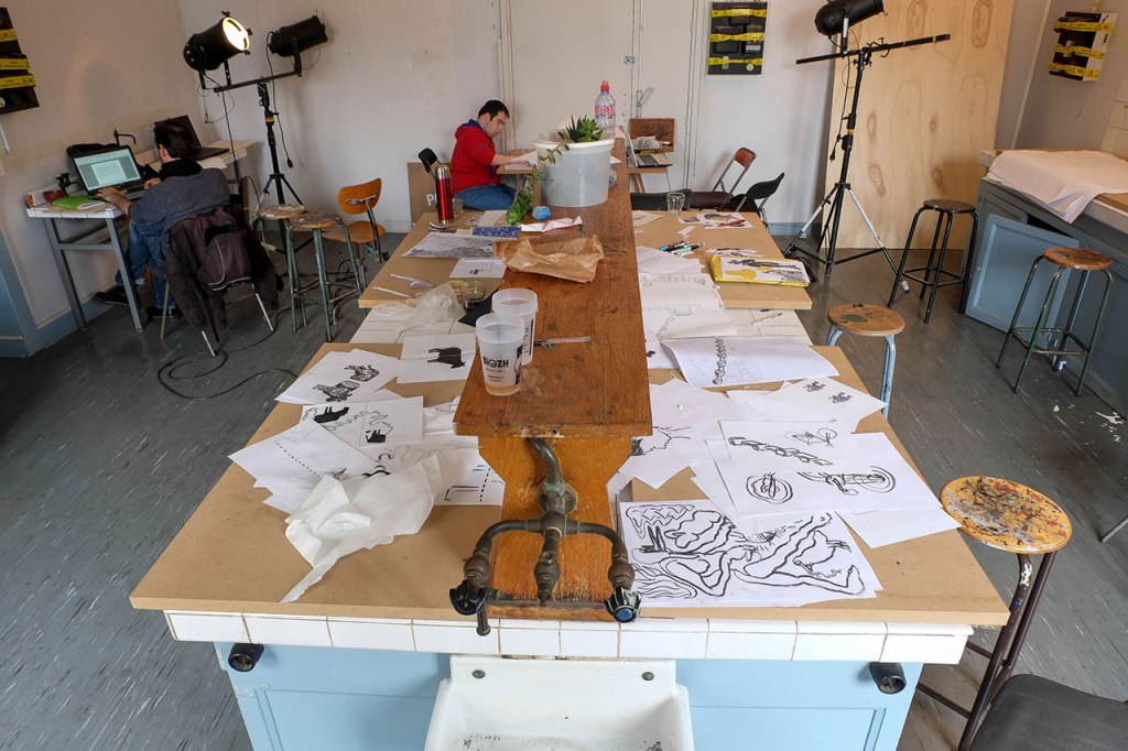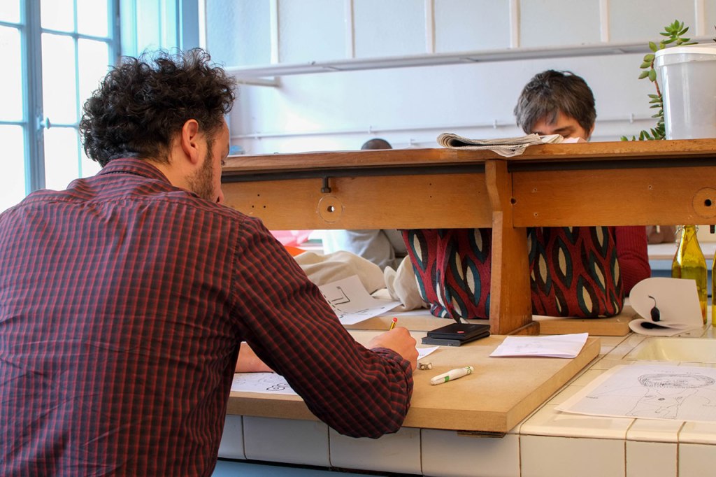 Ici, je nourris un journal d’images, regardant les territoires de l’écriture, les espaces de travail des artistes qui participent à cette édition : Sergio Aquindo, The Choolers, Julie Doucet, Quentin Faucompré, Brigitte Giraud, Romain Guillou, Joëlle Jolivet, Jonas Kocher, Hélène Leflaive, Pascal Leyder, Sébastien Lumineau, Ilan Manouach, Clémentine Mélois, Charles Pennequin, Monsieur Pimpant, Pierre Senges, Laetitia Sheriff, Le Tripode, et Fabio Visocgliosi.
