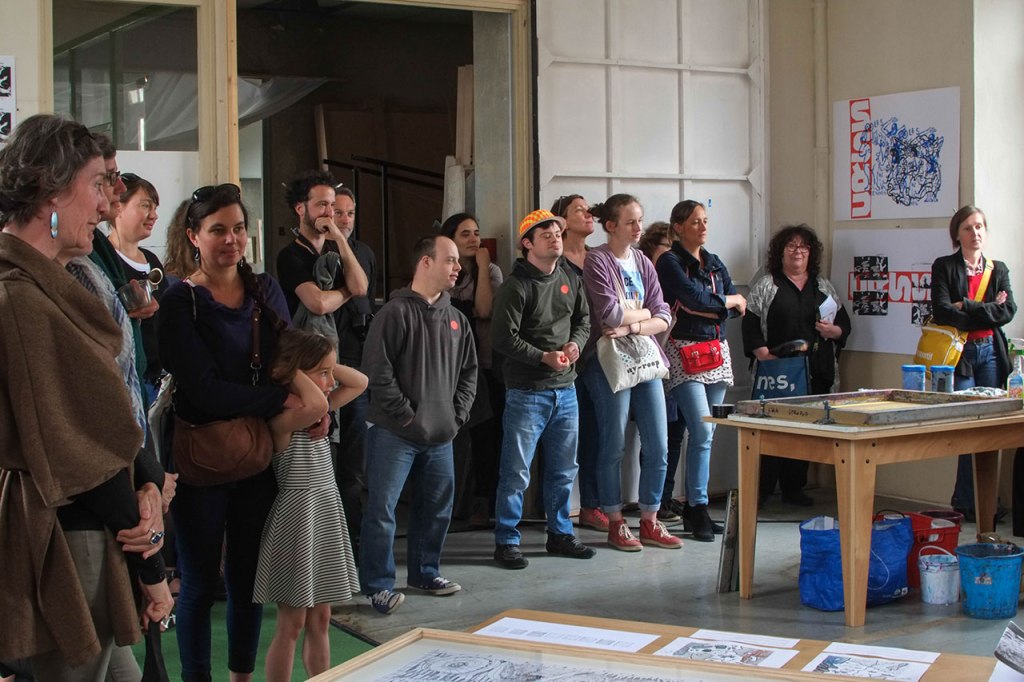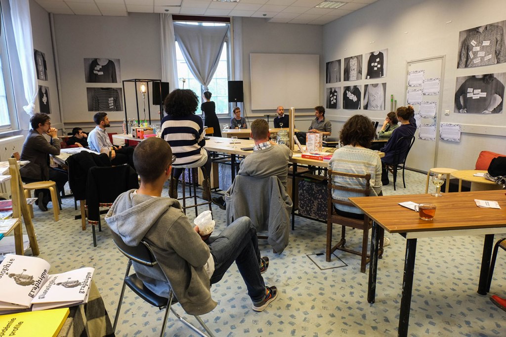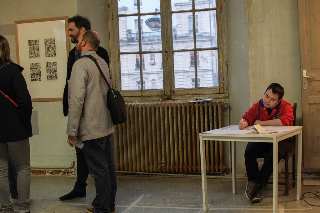 La publication de mi-parcours est disponible sur la table librairie. Les laborantins continuent à travailler et à se rencontrer. Le soir venu, Café 420 propose une rencontre autour du thème « Les artistes au travail », avec Anne-Françoise Rouche, directrice de La “S” Grand atelier, Luc Morvandiau et et les invités de La Collective. Puis Monsieur Pimpant organise le jeu de dessin où tout le monde est invité à participer.