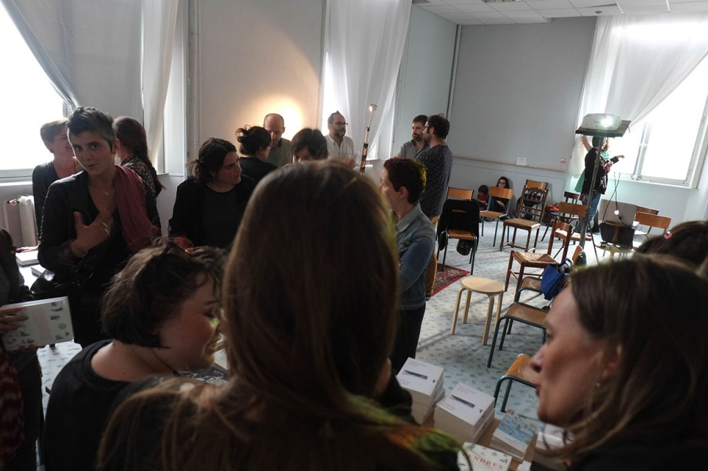Brigitte Giraud & Laetitia Shériff se rencontrent pour préparer la lecture musicale du soir, tandis que Julie Doucet colle, Quentin Faucompré agence ses photos de la performance de la veille, Romain Guilloux écrit, Hélène Leflaive élabore un roman photo, Pascal Leyder dessine, Monsieur Pimpant gife ses portraits…
