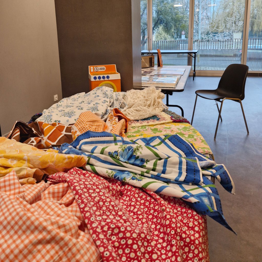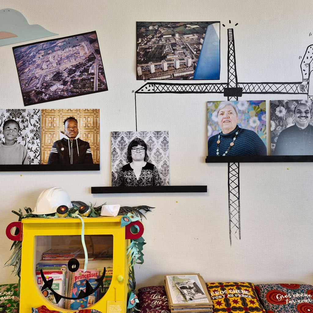 3. Archives du présent, exposition des portraits sur papiers-peints vintage, La Maison du projet de Maurepas, restitution des tirages photographiques aux participants à partir du 5 mars