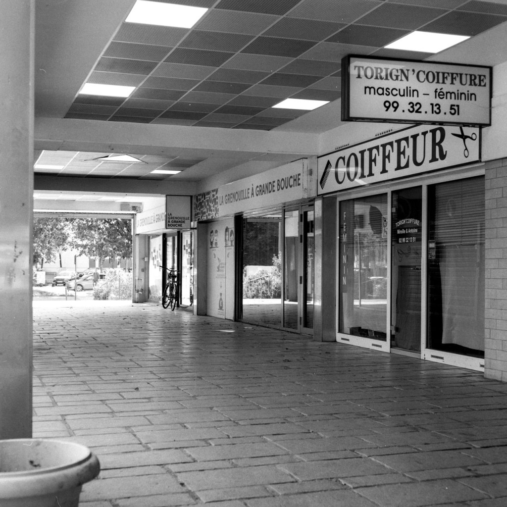 Portraits des derniers occupant-es de l’ancien centre commercial « Le Torigné », actuellement dix-huit tirages de un mètre sur un mètre sont exposés autour de la tabula rasa de la future cité artisanale du Blosne,