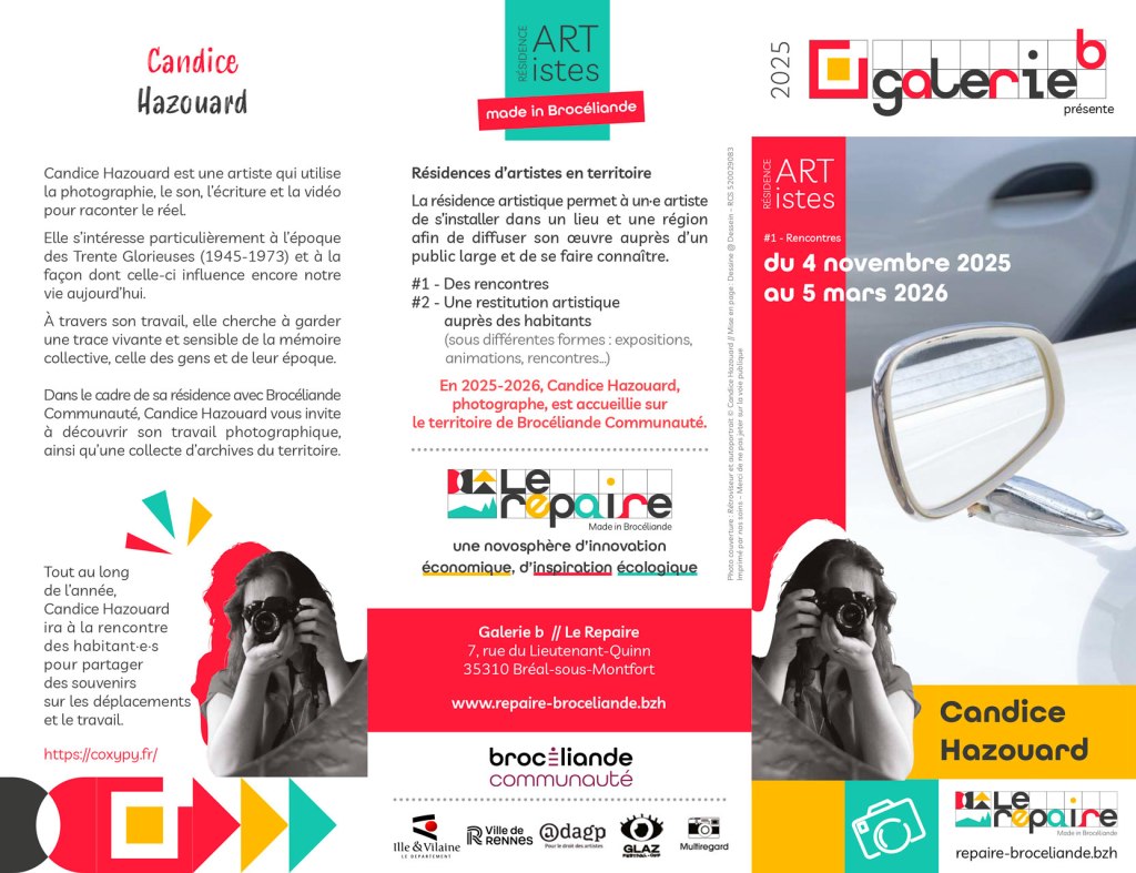 En résidence photographique avec le Repaire – Galerie B, je vous invite à découvrir Fenêtres sur Bourg et autres pièces de confort une exposition à la Médiathèque de Monterfil, du 5 novembre 2025 au 7 janvier 2026. C’est ici l’occasion de présenter les photographies entrées dans le Fonds communal d’art contemporain de la Ville de Rennes en 2024.