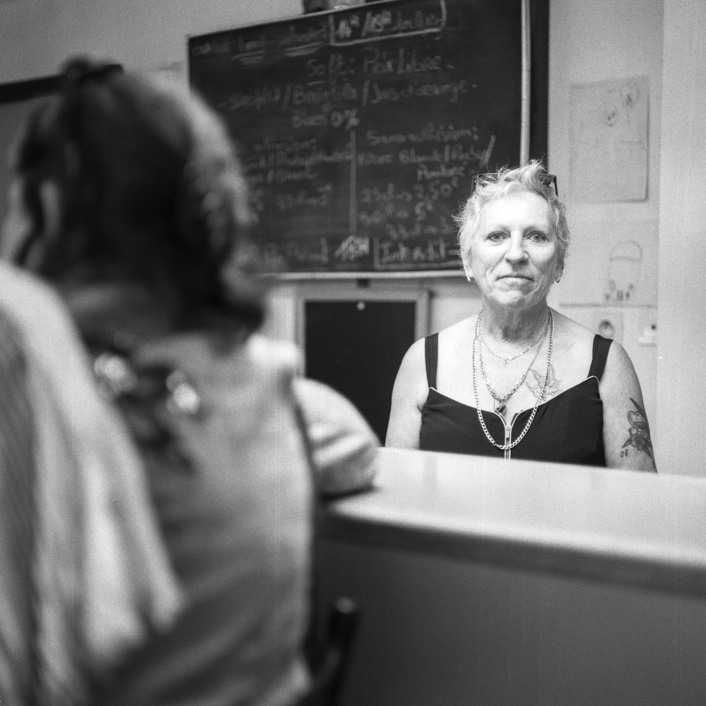 Nous avons discuté de lessive et de machine à laver, de la façon de laver le linge avant l’électricité et l’eau courante dans les maisons. Différentes paroles se sont exprimées à ce sujet, plus ou moins jeunes, d’ailleurs, collectives, avec plus ou moins d’expérience, s’adressant toujours à la mémoire. La conversation a parfois glissé, on a causé de téléphone, d’automobile, autres évolutions notoires de l’époque des Trente Glorieuses. Ensuite, nous avons fait des portraits photographiques ensemble, témoins du temps éclairés à la lumière naturelle.