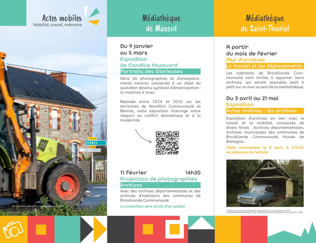 Dès maintenant, vous pouvez partager vos archives photographiques sur le travail et ses mouvements associés, en les déposant à la médiathèque de St Thurial. Une exposition viendra alors valoriser cette collecte menée tout au long de la résidence, avec les Archives Départementales et celles du Musée de Bretagne et de l’Ecomusée de la Bintinais, du 3 avril au 21 mai 2026.