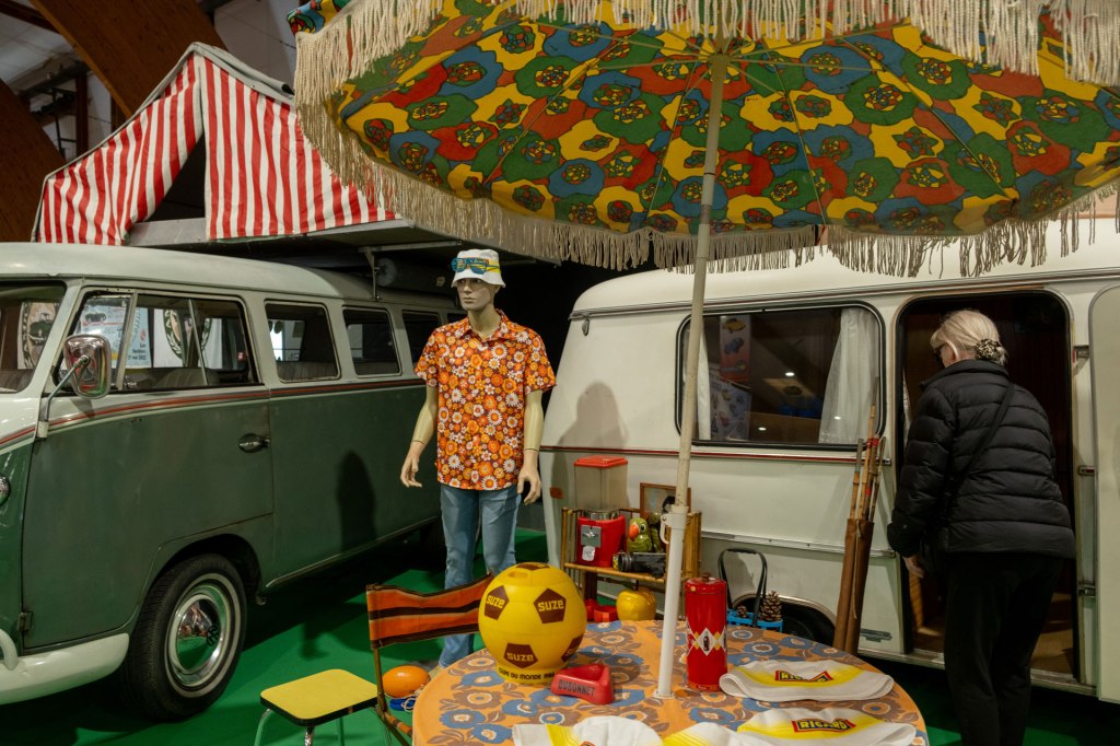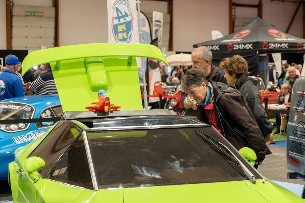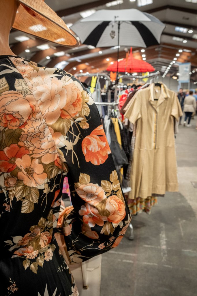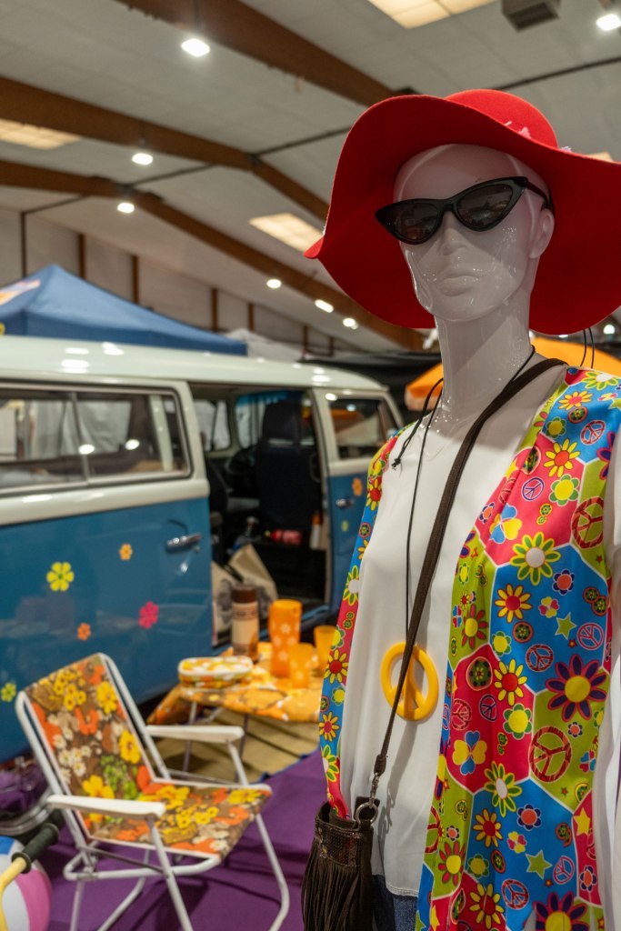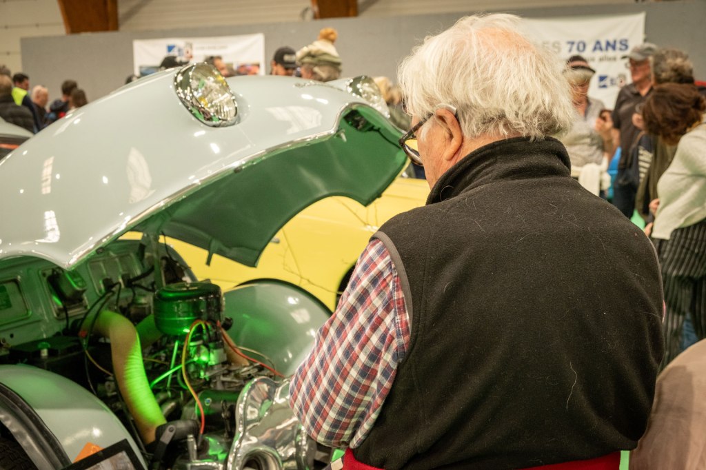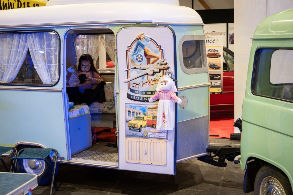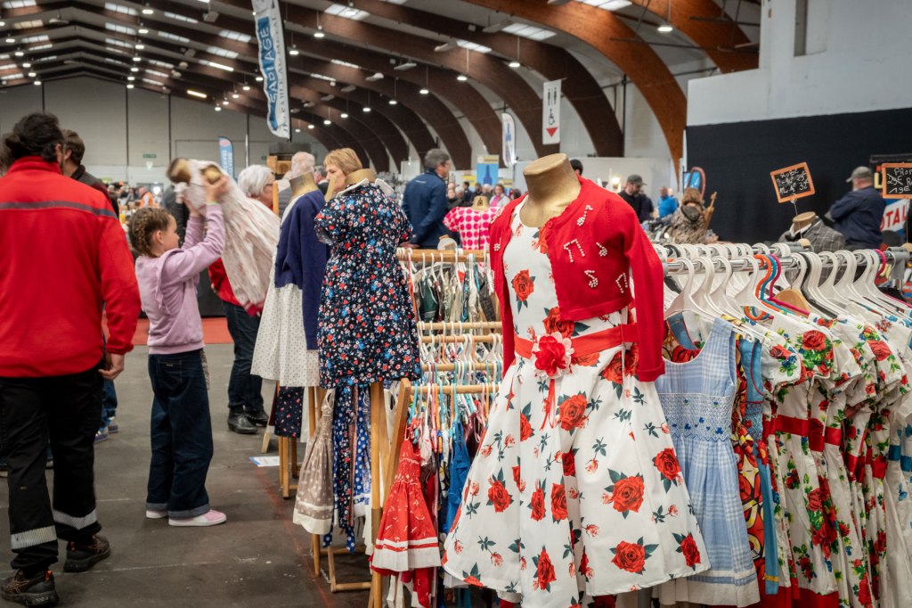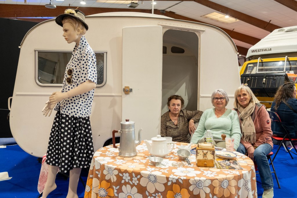 Samedi, j’ai arpenté pour la première fois le très fréquenté salon Retro Passion, telles des Transmobiles au Parc Expos de Rennes. Alors ici là, j’ai été médusée par les mises en scènes déployées pour mettre en lumière les autos ; toutes ces mannequins s’étaient données rendez-vous pour porter hauts les cœurs les couleurs des congés payés.
