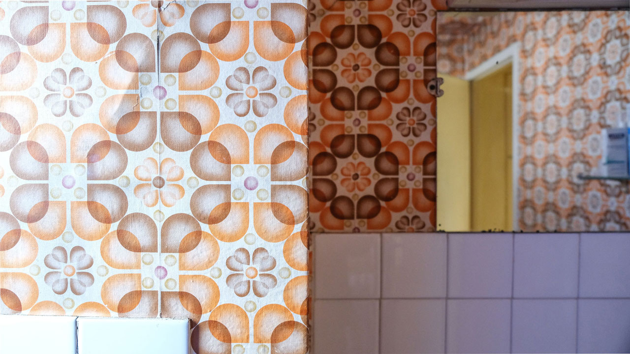 Des lieux en cours de transformation : un commerce qui ferme, une école qui ouvre, une jardinière en béton qui attend, une cuisine à détruire, une salle de bain à rénover, un numéro de square arraché, une maison des habitant.es qui se crée en haut de tour, des papiers-peints vintages dans des habitats en cours de disparition… Ces photographies de lieux qui changent, viennent en rencontre à ces visages de Maurepas sur papiers-peints vintages, entités rémanentes à l’épreuve du temps.